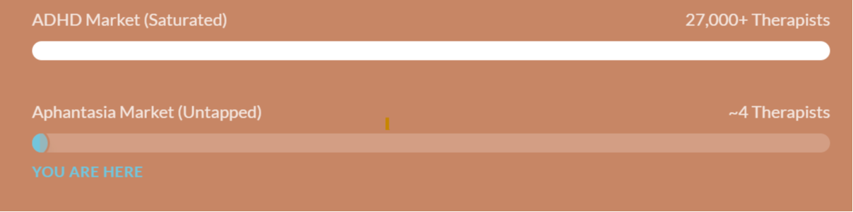 While the therapy space becomes increasingly crowded, a colossal market remains virtually untapped. By becoming an Aphantasia-Informed Therapist, you're not just gaining a specialty; you're pioneering a new field.Â