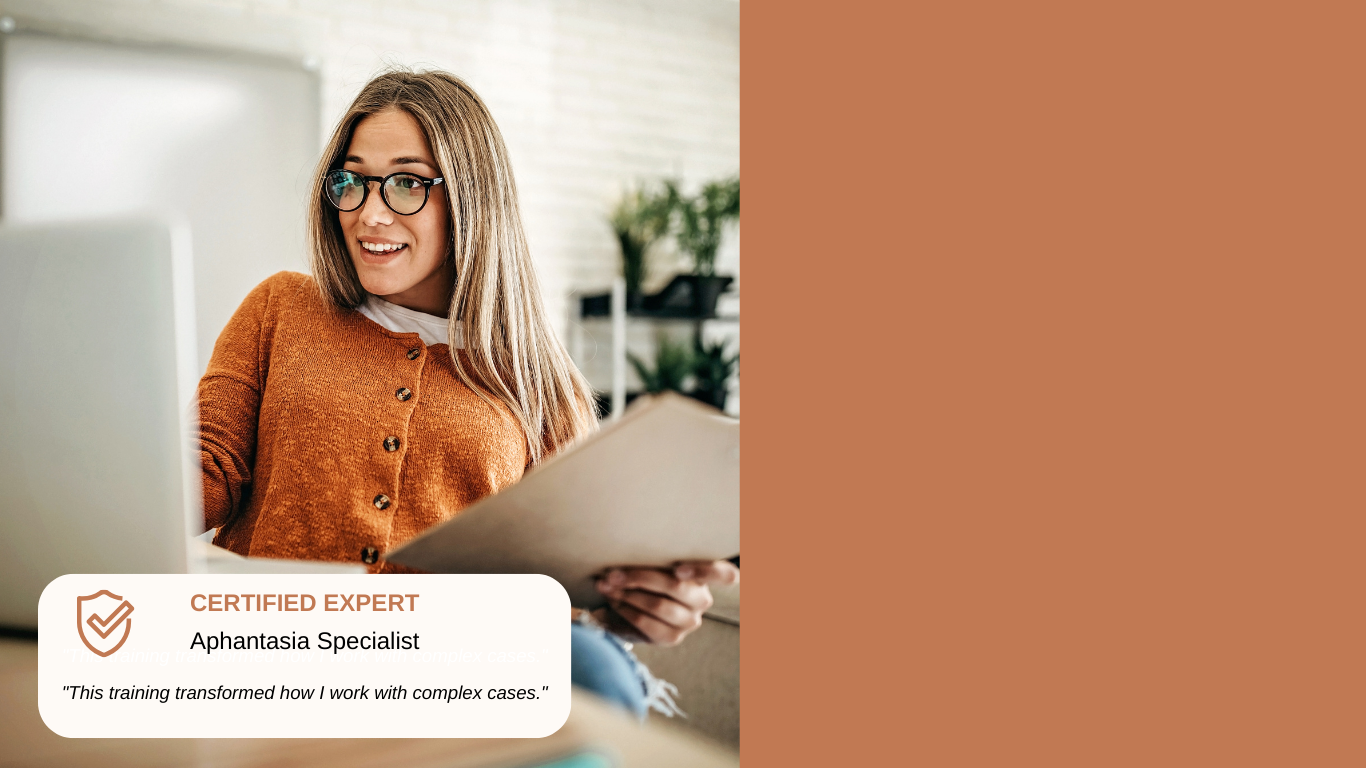 Transform your practice with Aphantasia-Informed Therapy. Discover the specialised skills to support the 3.9 million people in the UK who can't visualise and tap into a massive, underserved market.